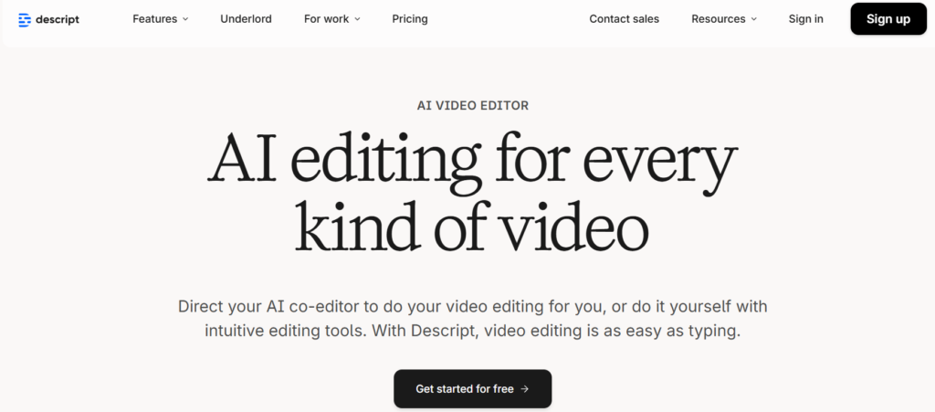 Descript changes how podcast editing works. Instead of editing audio timelines, you edit text, and the audio updates automatically. This makes the process much easier for beginners who are not familiar with traditional editing tools.