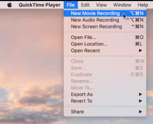 - Go to File → New Movie Recording